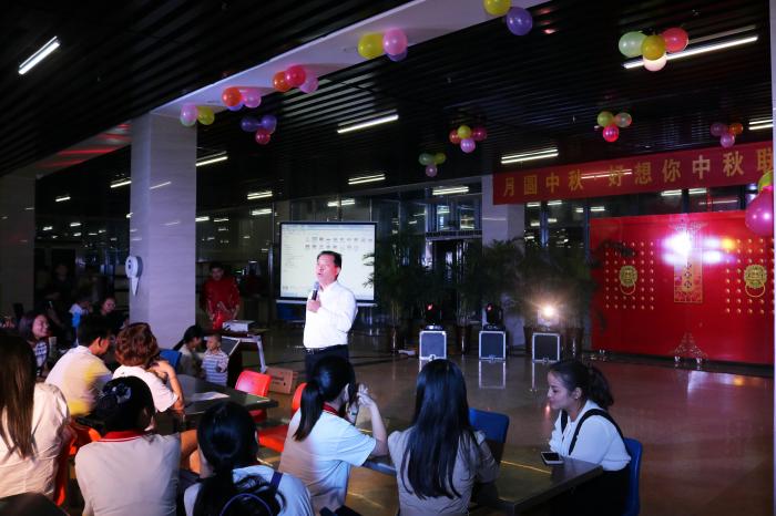 活动现场,无法回家团圆的行政管理员工与一线生产员工纷纷前来,董事长也特意与老父亲一同现身,与8868体育家人们共同欢度月圆中秋之夜。
