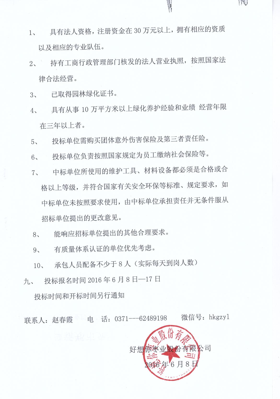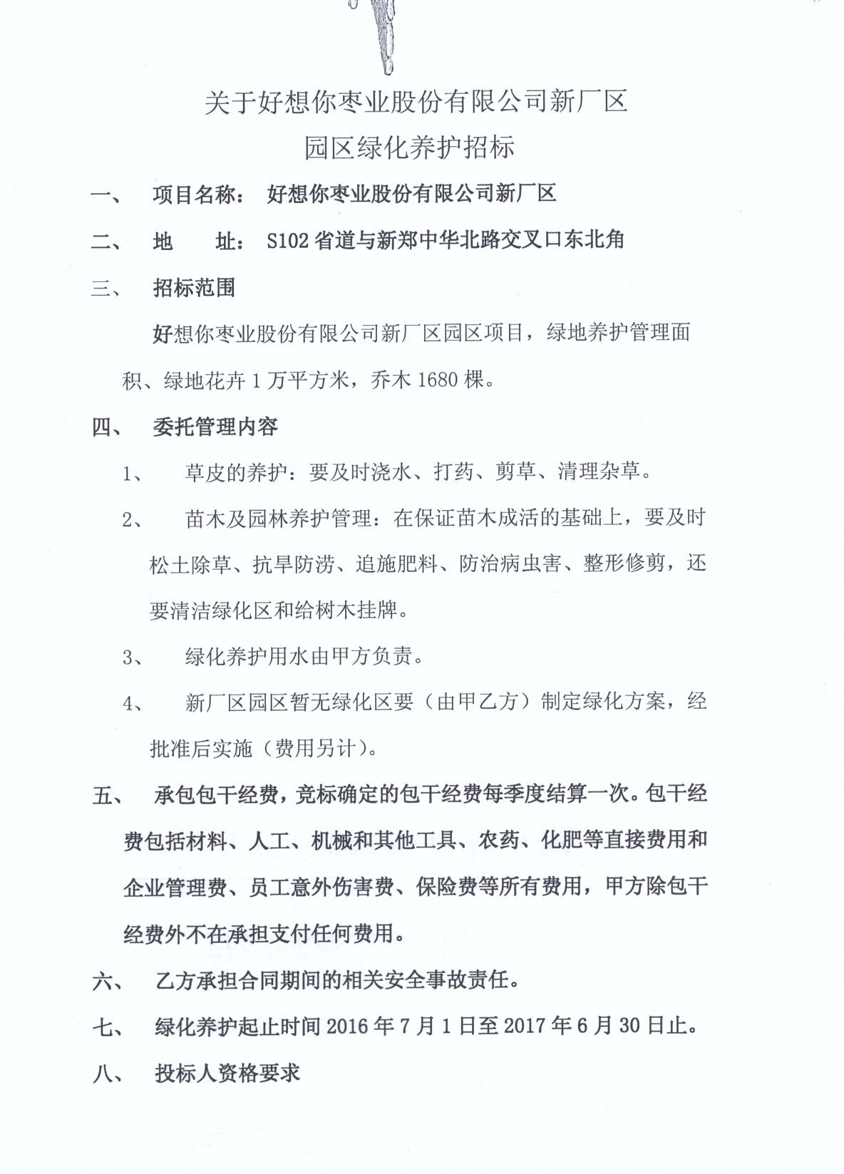 关于8868体育枣业股份有限公司新厂区园区绿化养护招标