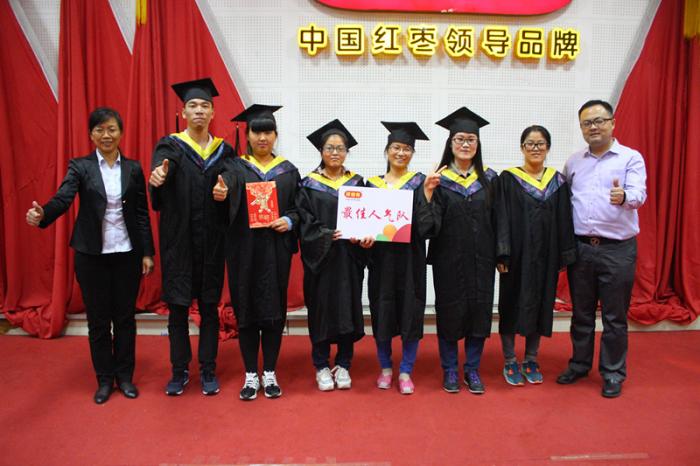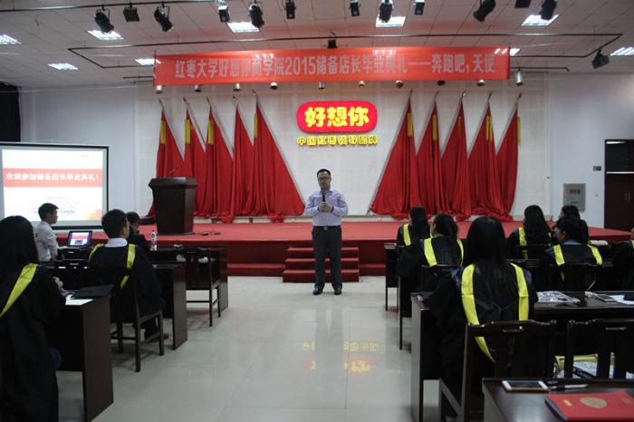 10月14日下午,红枣大学8868体育商学院2015储备店长毕业典礼在中华枣文化博览中心三楼会议室举行,连锁门店事业 部总经理司胤衡、人力资源部总监杨伏玲亲自为57位创业天使储备店长颁发毕业证书,祝贺他们在创业天使店长加速培养训练营中毕业,毕业典礼由人力资源部培训发展经理 王鲁主持。
