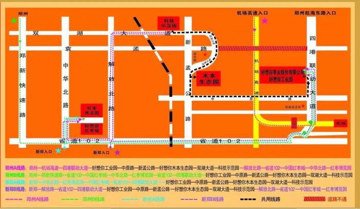路线:郑州——中州大道——郑新快速路——双湖大道——红枣科技示范园